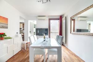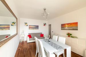 Inside the apartment are two bedrooms accommodating five beds in total, one private bathroom, and a fully equipped kitchen complete with kitchenette facilities. Additional amenities include heating, air conditioning, a washing machine and a flat-screen TV.